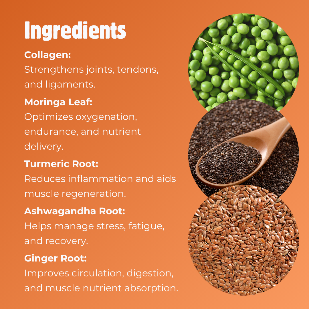 Turmeric Root: Reduces inflammation and aids muscle regeneration.