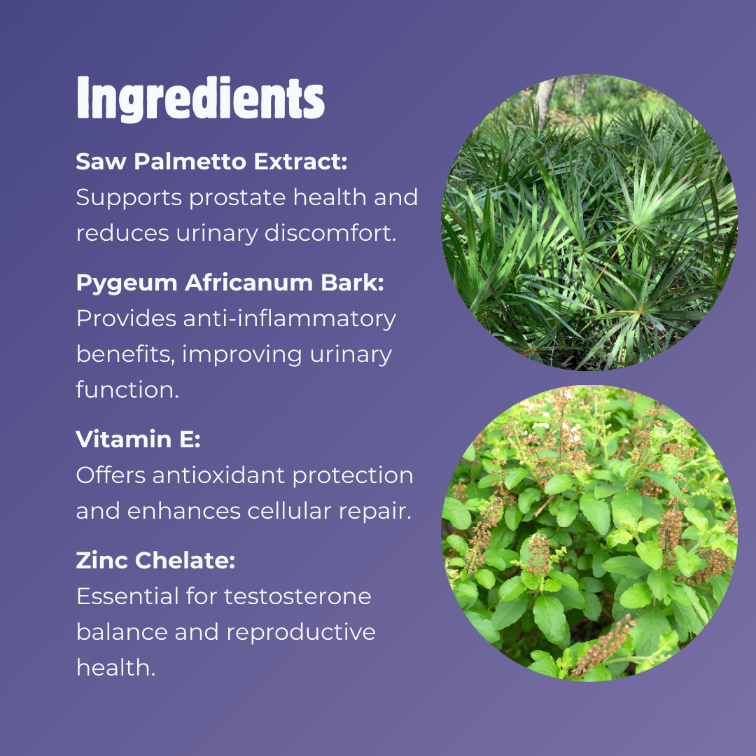 Prostate Health & Anti-Inflammatory Support: Saw palmetto and pygeum africanum help reduce prostate enlargement and inflammation.