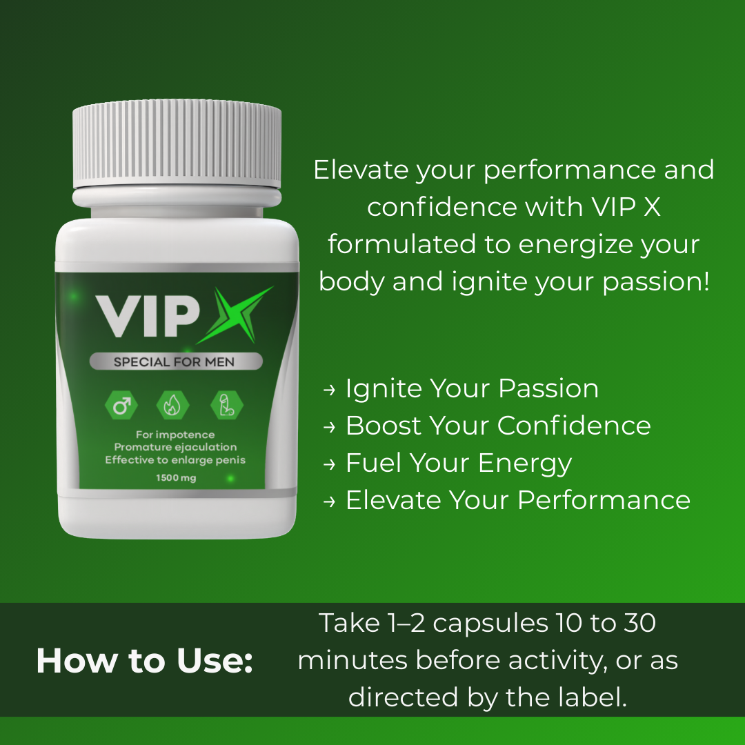 🚀 Elevate your performance and confidence with VIP X—formulated to energize your body and ignite your passion!